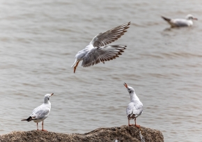 紅嘴鷗嘻戲深圳灣