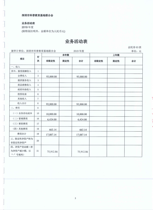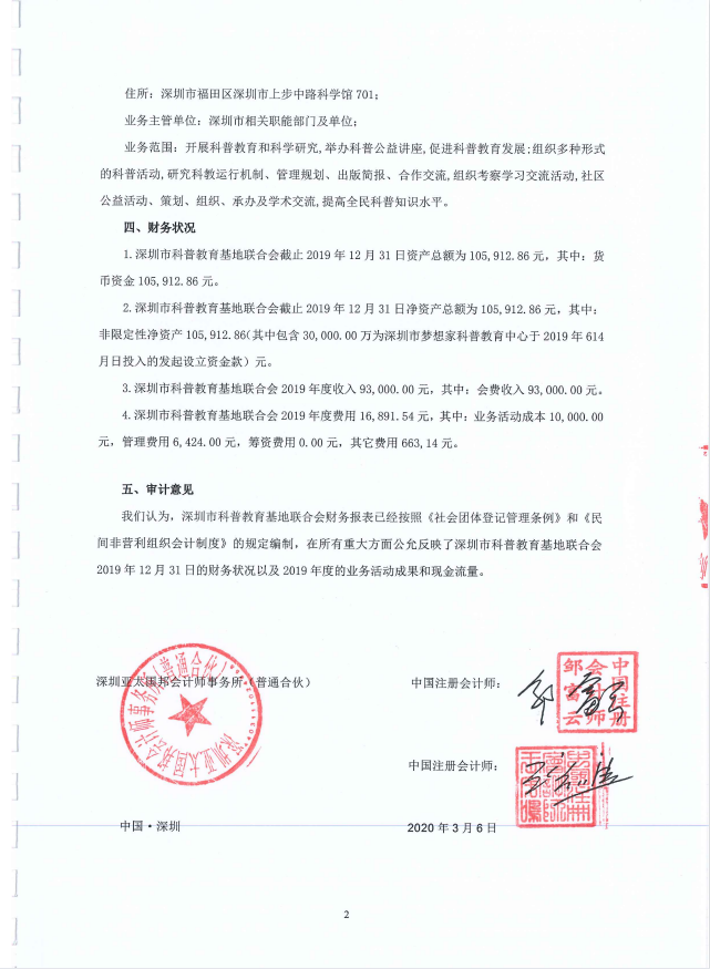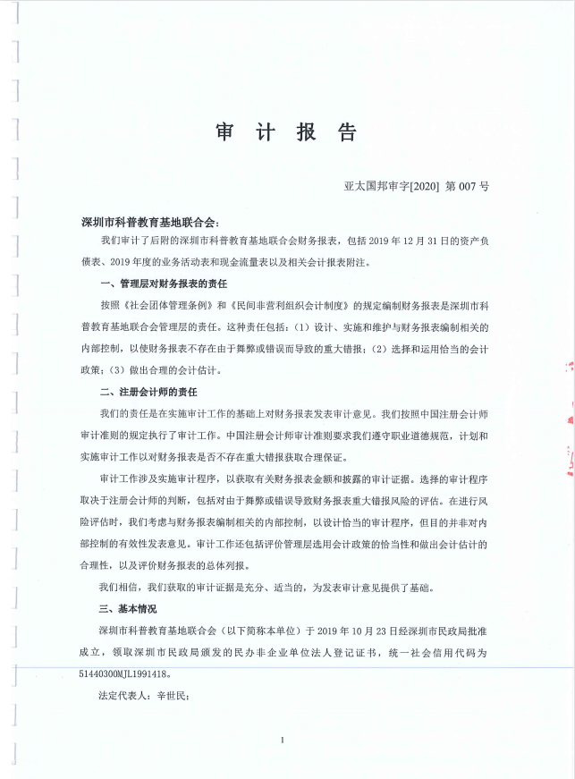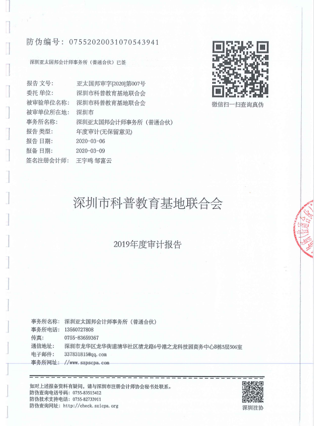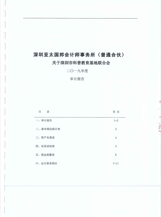 深圳市科普教育基地聯(lián)合會(huì)2019年審計(jì)報(bào)告