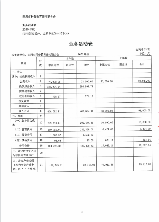 深圳市科普教育基地聯(lián)合會2020年審計報告