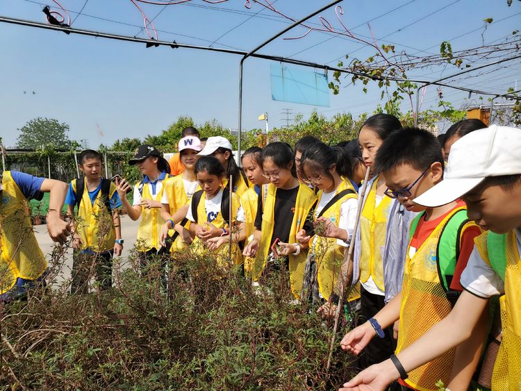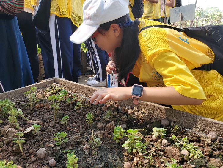 同學(xué)們還近距離接觸香草植物,用手觸摸香草植物,細(xì)嗅指尖沾染的芳香,摘下一片品嘗味道。