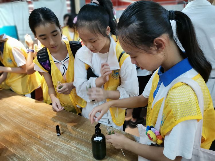 室內(nèi)擺放著許多不同味道的精油供同學(xué)們體驗(yàn)。