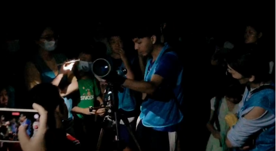 觀測活動現(xiàn)場,天文科普老師給大家進行天文望遠鏡操作講解與觀測體驗。