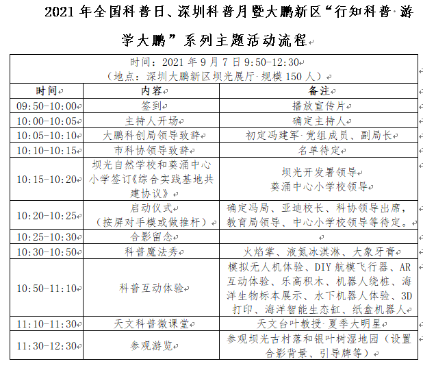 活動(dòng)主題:2021年全國(guó)科普日、深圳科普月暨大鵬新區(qū)“行知科普 游學(xué)大鵬”系列主題活動(dòng)