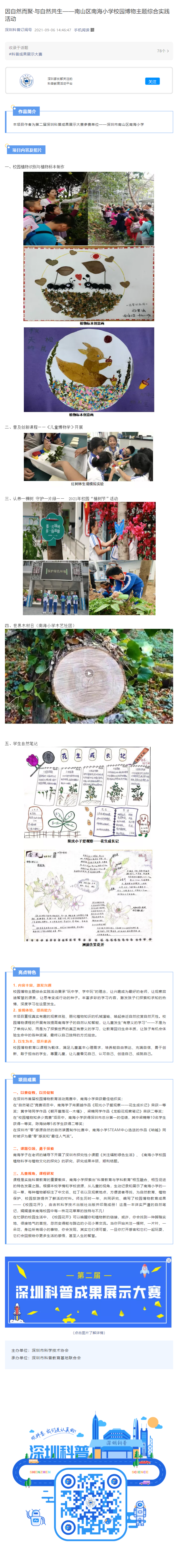 第二屆深圳科普成果展示大賽作品:因自然而聚·與自然共生——南山區(qū)南海小學(xué)校園博物主題綜合實踐活動