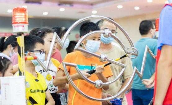 “火線沖擊”展位也同樣受到孩子們的熱烈歡迎,每一位參與者都屏住呼吸,時(shí)而小心翼翼,時(shí)而動(dòng)作又穩(wěn)又快,鍛煉手、眼、腦的協(xié)調(diào)能力,如果手柄碰觸到軌道,警報(bào)器會(huì)報(bào)警,過程緊張又刺激,豐富公眾的科普體驗(yàn)。