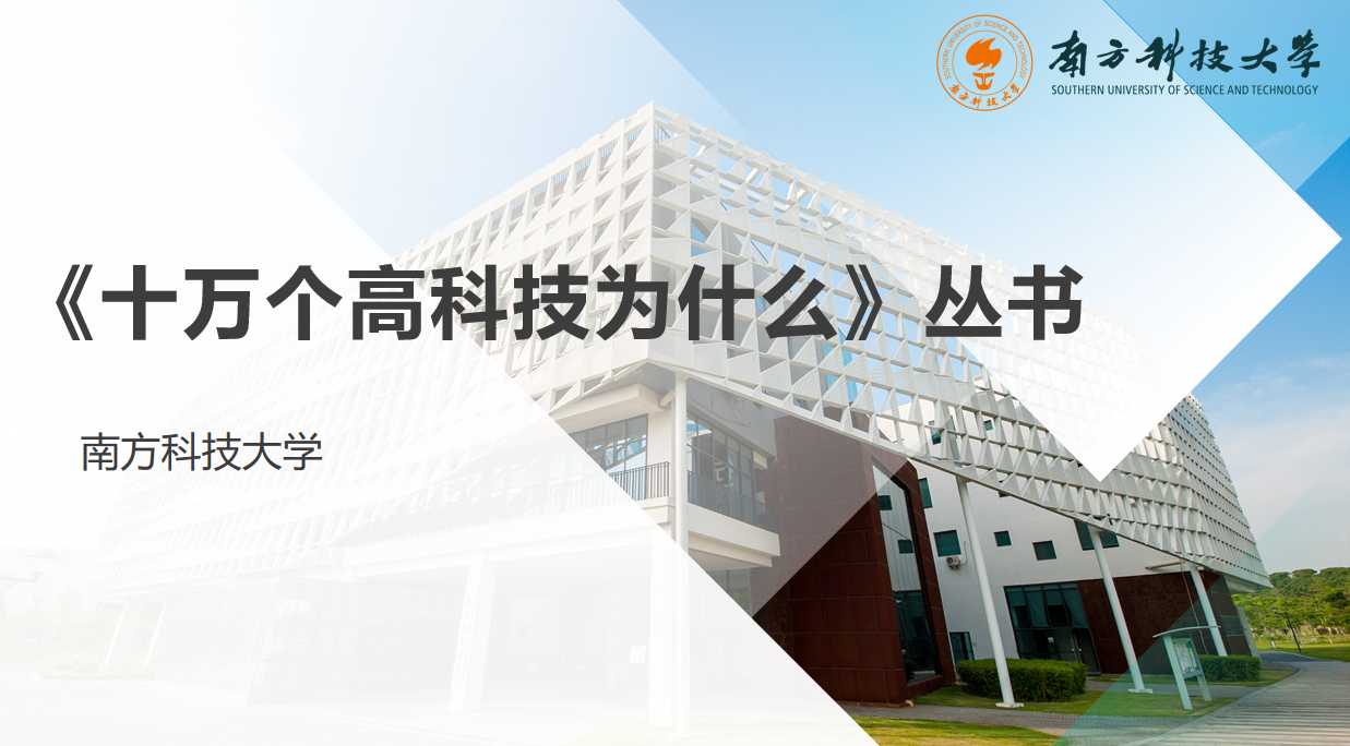 《十萬(wàn)個(gè)高科技為什么》第一、二輯 - 資源類 - 01 活動(dòng)簡(jiǎn)介 《十萬(wàn)個(gè)高科技為什么》第一、二輯是由南方科技大學(xué)組織編寫(xiě)的專門普及高科技知識(shí)的叢書(shū)。叢書(shū)主編為李鳳亮、劉青松。李鳳亮,現(xiàn)為南方科技大學(xué)黨委書(shū)記,講席教授,中共深圳市第七屆委員會(huì)候補(bǔ)委員,主要研究方向?yàn)槲乃嚴(yán)碚?、文化產(chǎn)業(yè)、城市文明,在西方小說(shuō)詩(shī)學(xué)研究、當(dāng)代海外華人學(xué)者批評(píng)理論研究、文化科技融合與新興文化業(yè)態(tài)研究等領(lǐng)域具有開(kāi)拓性貢獻(xiàn); 劉青松,現(xiàn)為南方科技大學(xué)海洋科學(xué)與工程系講席教授,人力資源部部長(zhǎng),主要從事古地磁學(xué)基本理論及其在地學(xué)中應(yīng)用的基礎(chǔ)與綜合研究,先后主持國(guó)自然基金杰出青年基金項(xiàng)目、重點(diǎn)項(xiàng)目、國(guó)家重點(diǎn)研發(fā)計(jì)劃課題、國(guó)自然重大研究計(jì)劃重點(diǎn)支持項(xiàng)目等10余項(xiàng),入選教育部特聘教授、全國(guó)模范教師。 02 活動(dòng)特色 叢書(shū)面向高中及以上文化水平、對(duì)科技文化感興趣的讀者,以最前沿的科技研究為基礎(chǔ),普及高科技領(lǐng)域的一些基本問(wèn)題,如科技類學(xué)科主要研究方向、各學(xué)科前沿研究領(lǐng)域、國(guó)內(nèi)外主流的研究方法和特點(diǎn)、科技前沿交叉突破的方向、一些高科技公司的主要科技成果以及科技與文化的關(guān)系等,包含科技熱點(diǎn)篇、電子與信息篇、材料與化學(xué)篇、生物與科技篇、地球與環(huán)境篇等篇章。 叢書(shū)有如下特點(diǎn): 1、?作者權(quán)威性:本書(shū)主筆為一批年輕的海歸教授,有堅(jiān)實(shí)的科研水平保障; 2、?內(nèi)容上原創(chuàng)性、科學(xué)性、可讀性相結(jié)合; 3、?形式上圖文相配,單篇控制在2000字左右,配2-3幅圖片; 4、?語(yǔ)言上既嚴(yán)謹(jǐn)科學(xué),又通俗有趣; 5、?科技與文化緊密結(jié)合,既普及推廣最新的科技知識(shí)和成果,也探討科技與社會(huì)、科技與文化方面的熱點(diǎn)問(wèn)題。 03 取得成效 叢書(shū)出版后社會(huì)反饋良好,發(fā)行量可觀。目前第一輯發(fā)行量逾5萬(wàn)冊(cè)、第二輯發(fā)行逾2萬(wàn)冊(cè)。第一、二輯分別入選第十四屆廣東省中小學(xué)“暑假讀一本好書(shū)”活動(dòng)和第七屆廣東省中小學(xué)生“寒假讀一本好書(shū)”活動(dòng);2022年,叢書(shū)入選中國(guó)科普作家協(xié)會(huì)推薦原創(chuàng)科普?qǐng)D書(shū)(100種)。