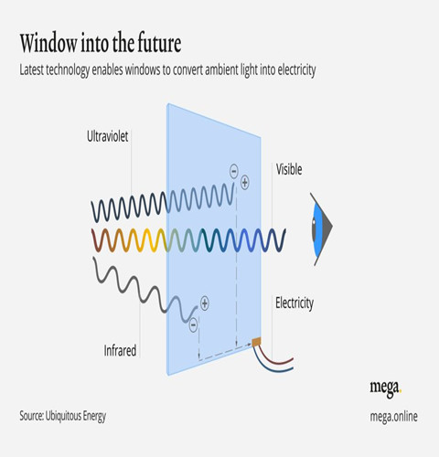 2019年年底,美國加利福尼亞州紅杉市的Ubiquitous Energy公司的員工聚集在完全由玻璃窗組成的會議室里,他們面前的新型玻璃窗不僅能呈現(xiàn)加利福尼亞州北部壯觀的山景和美麗的天空,還能兼作光伏電池,為公司的照明、電腦和空調(diào)等供能。