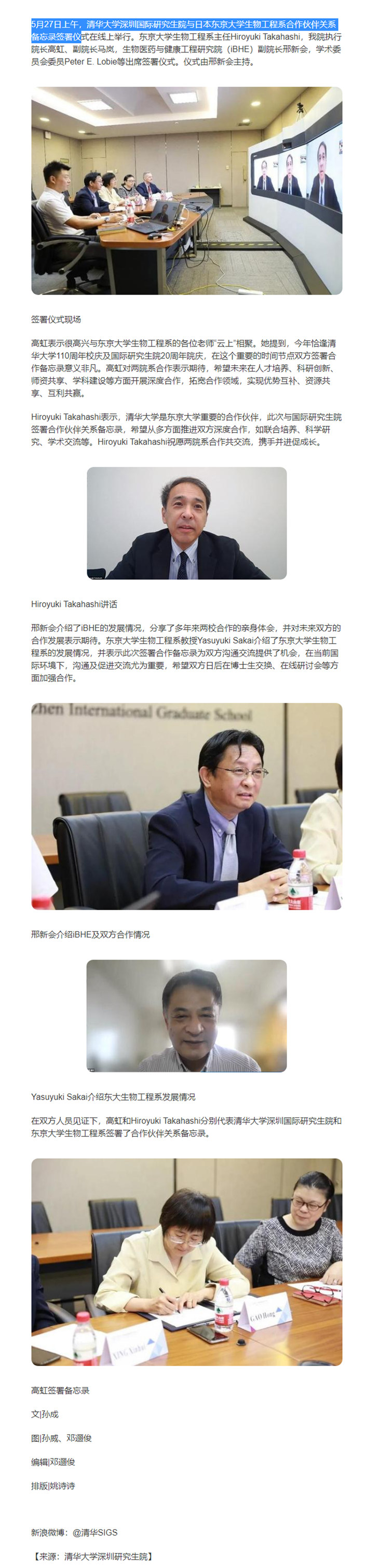 清華大學(xué)深圳國(guó)際研究生院與東京大學(xué)生物工程系簽署合作備忘錄