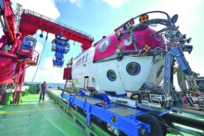 圖為“深海勇士”號(hào)載人潛水器,該潛水器用于水下考古數(shù)據(jù)采集。新華社記者蒲曉旭攝