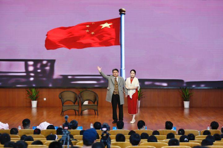 下半場(chǎng),“科學(xué)有觀”活動(dòng)走進(jìn)了濱江實(shí)驗(yàn)小學(xué),帶領(lǐng)孩子們繼續(xù)感受航天精神的魅力?;顒?dòng)一開始,浙江省科技館的表演團(tuán)隊(duì)帶來了一場(chǎng)精彩的科普劇《錢學(xué)森》,演繹了中國航天事業(yè)奠基人錢學(xué)森回國之前的故事。五年歸國路,十年兩彈成,從導(dǎo)彈衛(wèi)星到筑夢(mèng)神州,錢學(xué)森一生不忘“振興中華”的諾言,他敢于創(chuàng)新、愛國奉獻(xiàn)的精神也感染了現(xiàn)場(chǎng)的學(xué)生。