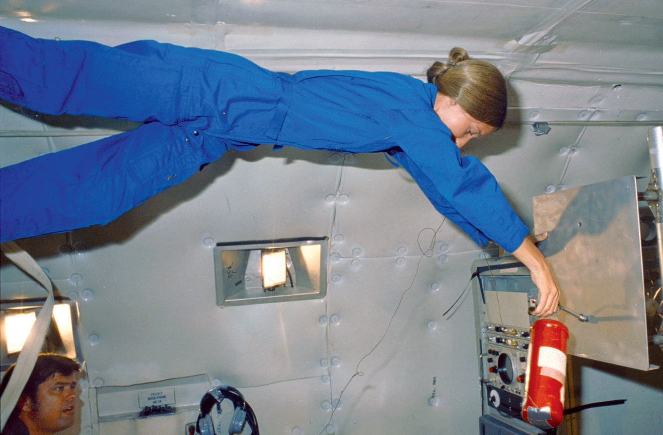 航天員在KC-135飛機(jī)上練習(xí)在失重環(huán)境下使用滅火器