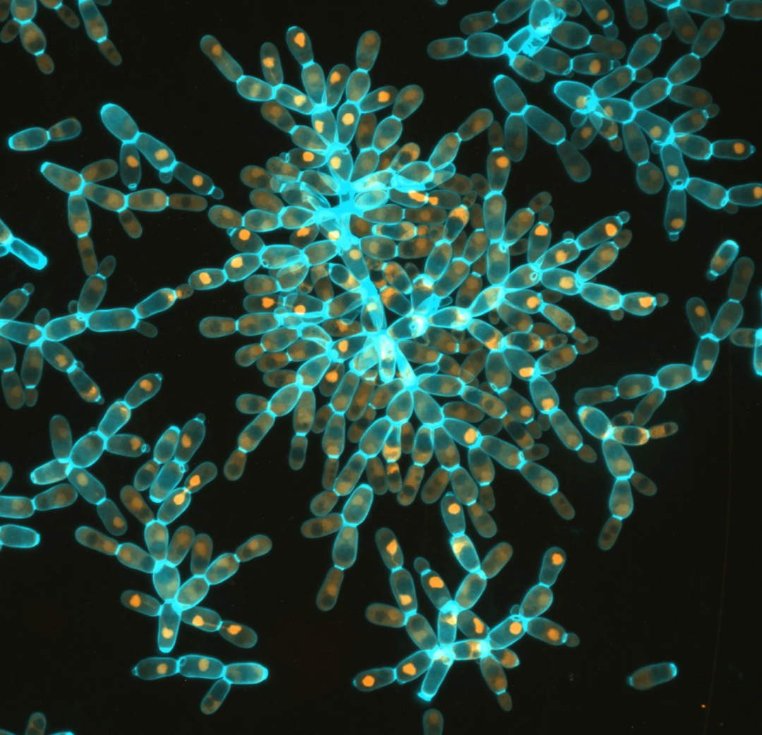 9.酵母雪花:星狀的酵母細胞團是探究多細胞生物進化的實驗結(jié)果。研究人員選擇了進化成分支團塊的大細胞。