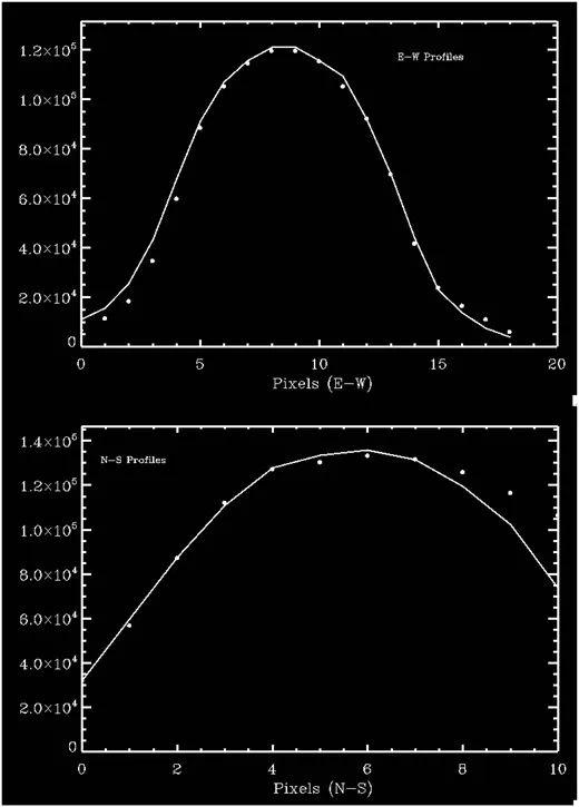 于是天文學(xué)家分析了這三顆星的輪廓。三顆星中,有一顆距離另外兩顆稍遠(yuǎn),可以和鄰近的正常星對(duì)比它們的輪廓。結(jié)果發(fā)現(xiàn),這三顆星的輪廓和正常的星幾乎完全一致,如果是放射性塵埃造成的亮點(diǎn),不可能造成這樣的結(jié)果。如果是飛機(jī)、小行星這種移動(dòng)較快的目標(biāo),在底片上的輪廓應(yīng)該是一條直線。基本可以確定,這些亮點(diǎn),就是望遠(yuǎn)鏡正常成像產(chǎn)生的。
