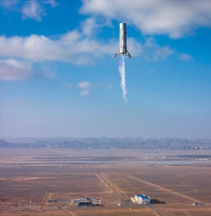 藍(lán)箭VTVL-1火箭進(jìn)行十公里高度回收試驗(yàn)的現(xiàn)場(chǎng)圖像