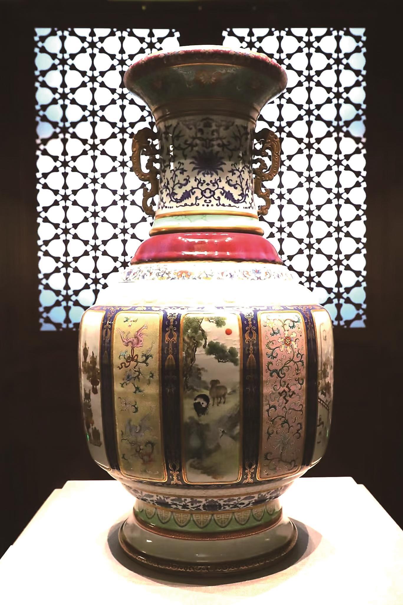 左圖為清乾隆“各種釉彩大瓶”,高86.4厘米,口徑27.4厘米,足徑33厘米。