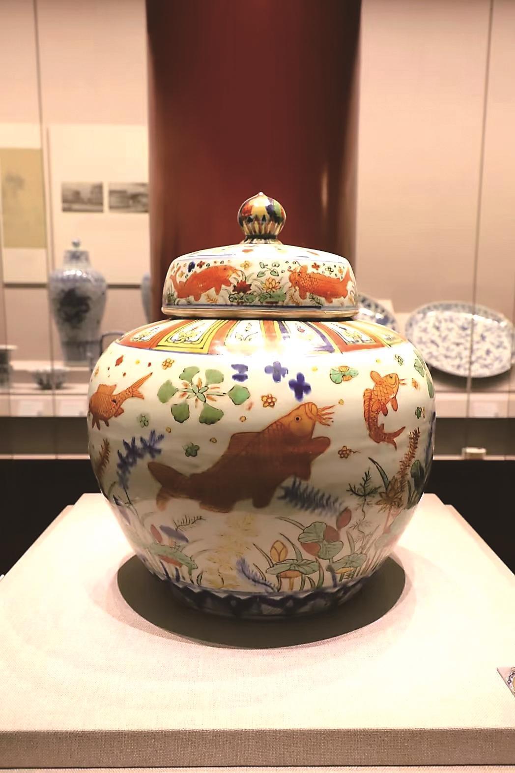 右圖為明嘉靖“五彩魚藻紋蓋罐”。