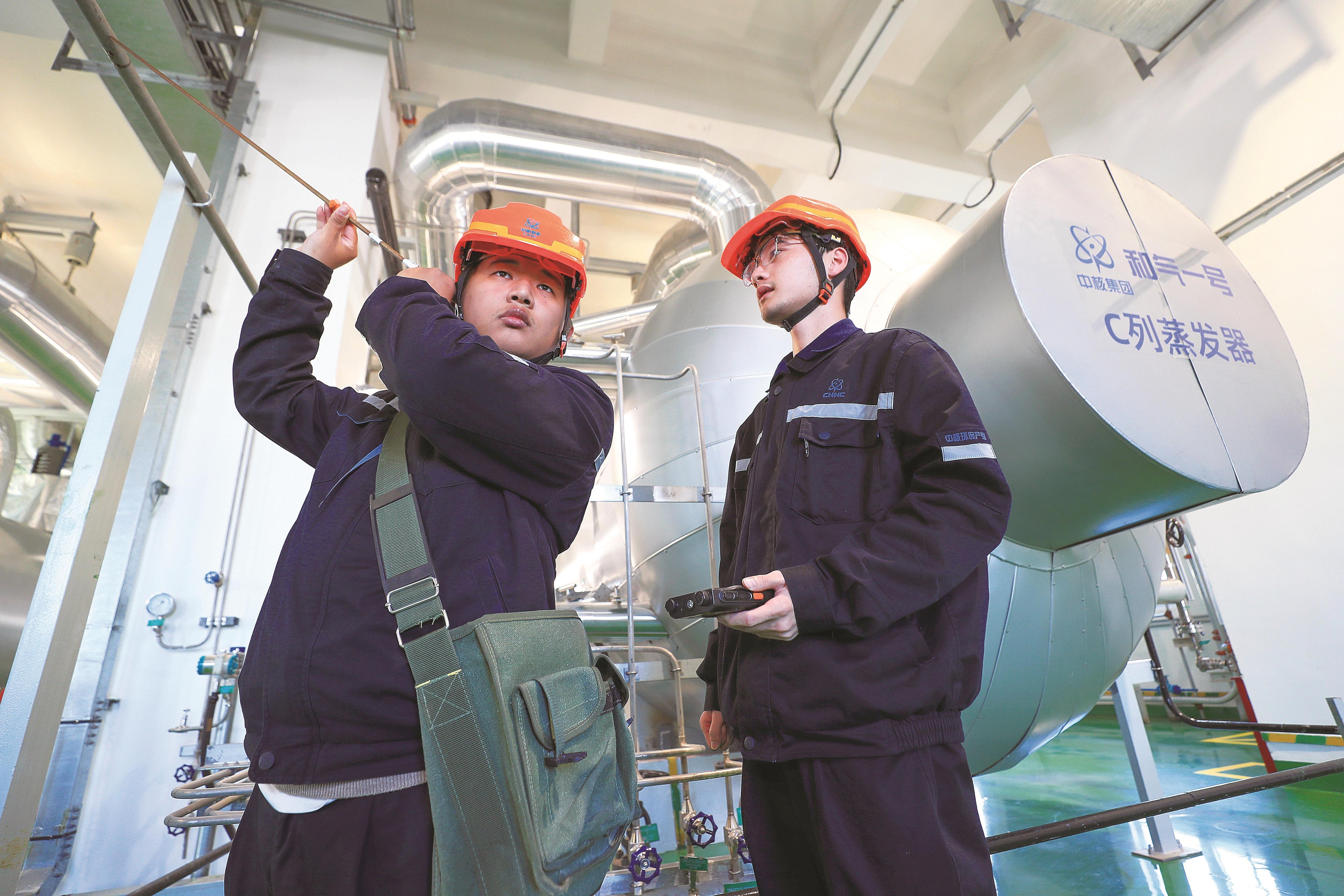 11月5日,技術(shù)人員通過聽針巡檢核能供汽管道。