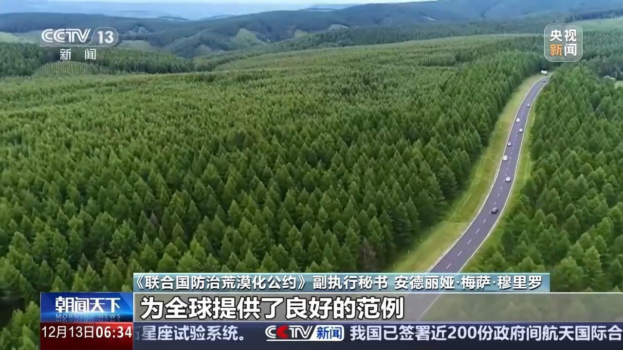 《聯(lián)合國防治荒漠化公約》副執(zhí)行秘書 安德麗婭·梅薩·穆里羅:中國已經(jīng)率先實現(xiàn)了土地退化零增長,53%的可治理沙化土地得到有效治理,中國打造的“綠色長城”為全球提供了良好的范例。