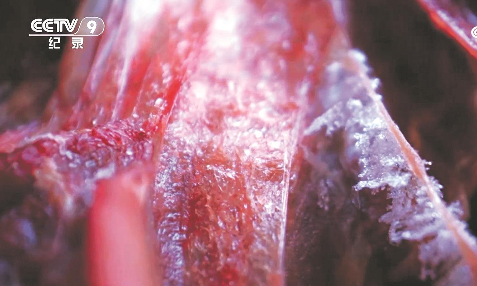 此外,水結(jié)冰后體積會(huì)膨脹約10%,進(jìn)入細(xì)胞內(nèi)的水結(jié)冰,會(huì)刺破動(dòng)植物的細(xì)胞,這對(duì)于水果保鮮不是好事兒,但是對(duì)于一些用于炸制的肉類來說,不妨利用一下水的這個(gè)特性(見“舌尖4”《煥發(fā)》,肉結(jié)冰收藏)。讓肉類吸收足夠的水,降溫至結(jié)冰后裹面糊炸制,肉的口感會(huì)更松軟。