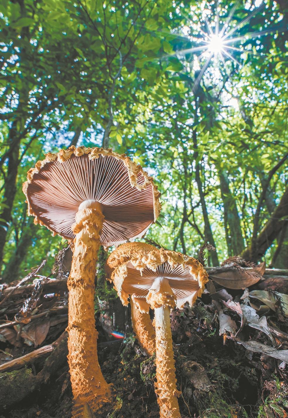 圖③: 蘑菇孢子噴發(fā)。周勇 攝