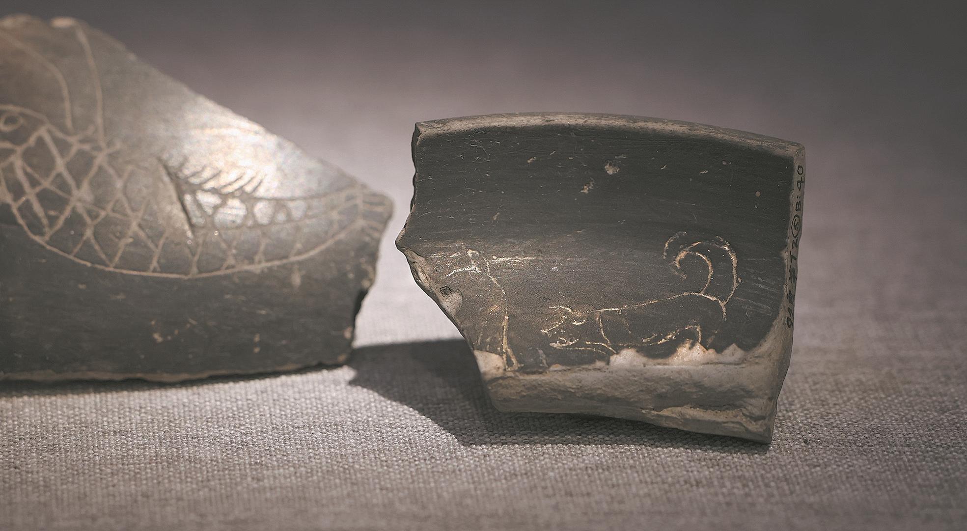 圖②: 杭州市余杭區(qū)茅庵里遺址出土的陶片上,刻畫了一只小狗。