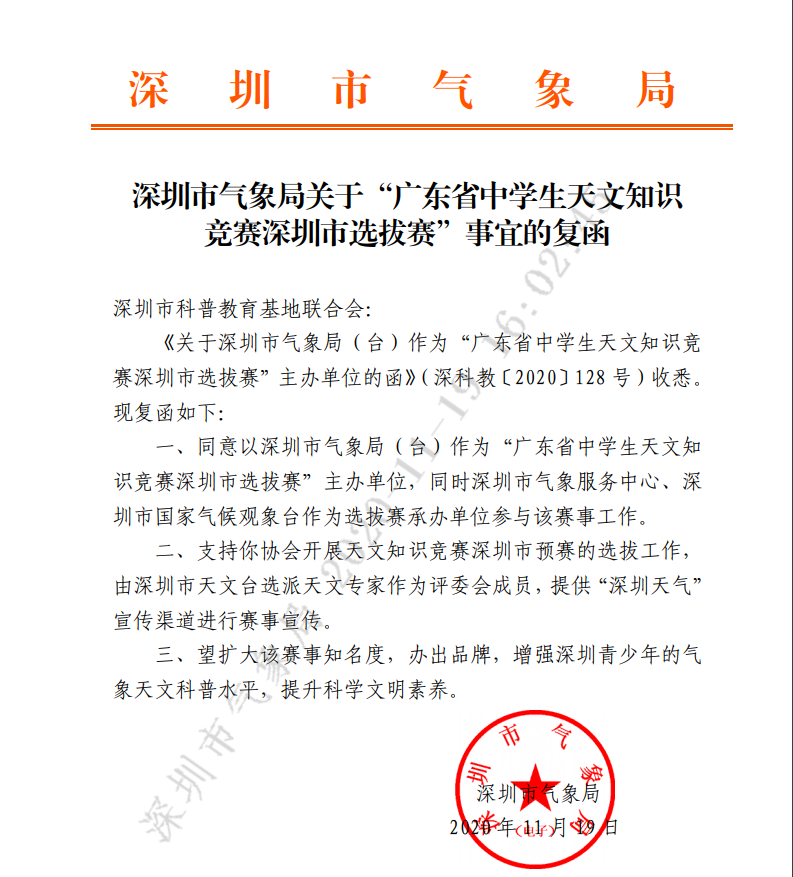 Ps:參加本次天文知識競賽除了獲得榮譽證書,還有機會參加11月28日在深圳氣象局舉辦的賽事啟動儀式,更為明年廣東省天文知識競賽做天文知識儲備。