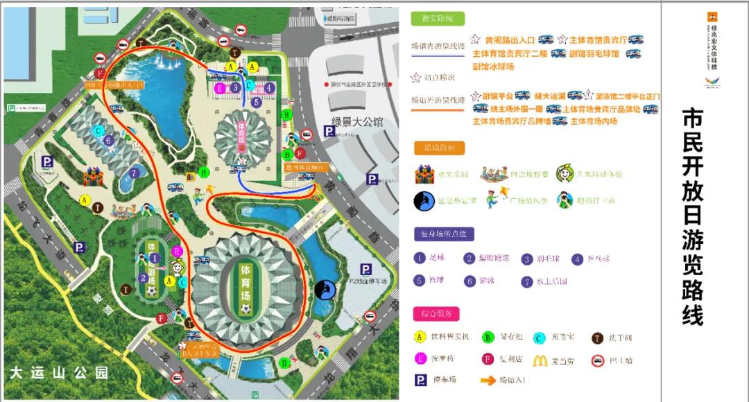 游覽路線:黃閣路大運(yùn)石→體育館主館貴賓廳正門(mén)→主館貴賓廳二樓→副館羽毛球館→副館平臺(tái)→繞大運(yùn)湖→游泳館二樓平臺(tái)正門(mén)→繞主場(chǎng)外圍一圈→從體育館P2停車(chē)場(chǎng)入口進(jìn)入→主體育場(chǎng)貴賓廳品牌墻→主體育場(chǎng)內(nèi)場(chǎng)→大運(yùn)中心體育場(chǎng)D口結(jié)束
