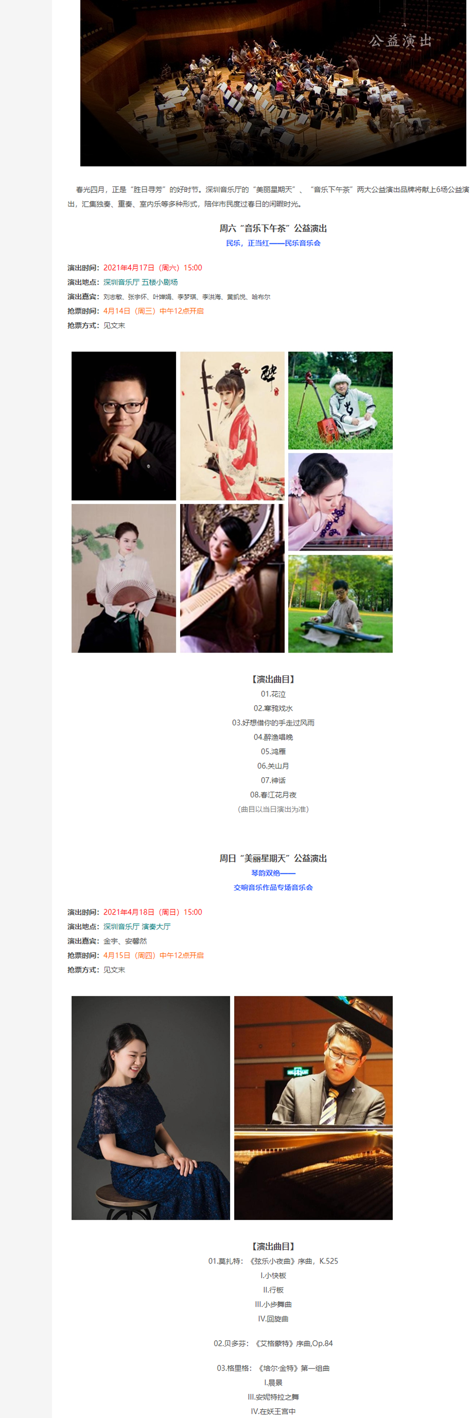【周末公益演出】本周“音樂下午茶”和“美麗星期天”公益演出搶票預(yù)告