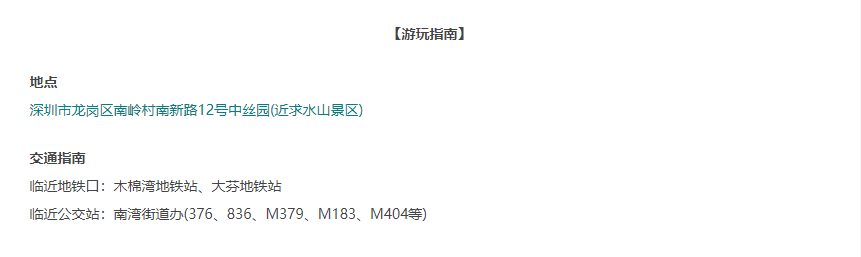 深圳市龍崗區(qū)南嶺村南新路12號中絲園(近求水山景區(qū))