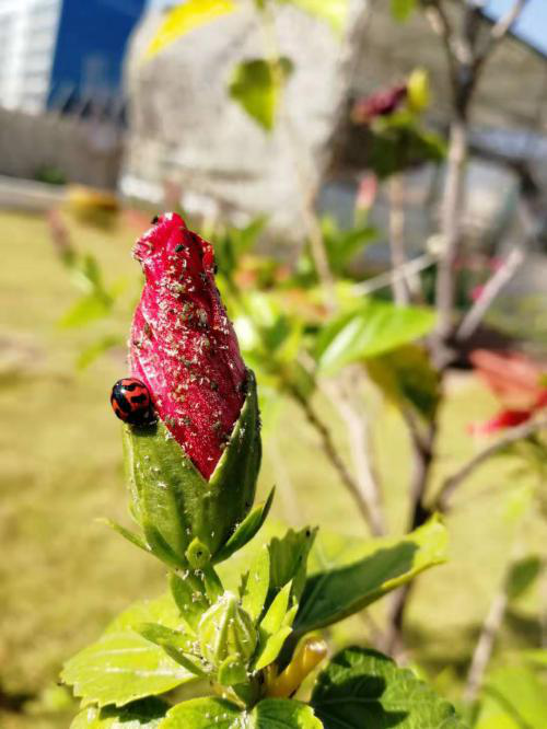 不過,也不用擔(dān)心蚜蟲會(huì)被帶到整個(gè)菜園,大量繁衍,樓頂菜園因此損失慘重。因?yàn)橹灰獦琼敳藞@的生態(tài)好,堅(jiān)持不施用農(nóng)藥,蚜蟲的天敵遠(yuǎn)遠(yuǎn)不止上面這種瓢蟲。好!我們來繼續(xù)觀察!
