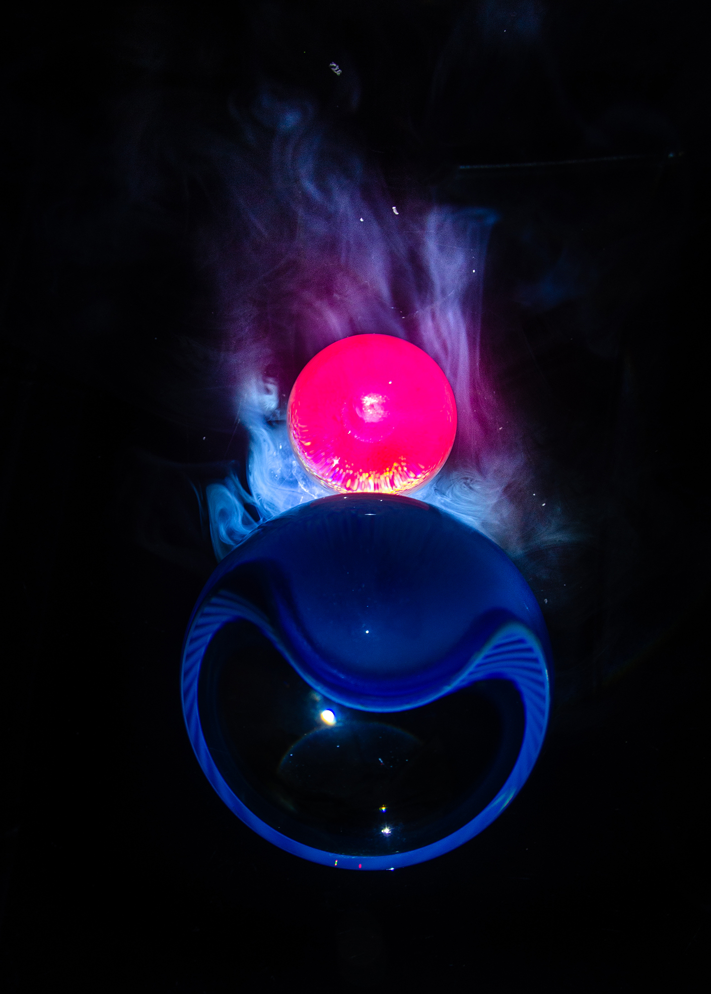 通過水晶球與激光結(jié)合,創(chuàng)造想象中的5G情景。