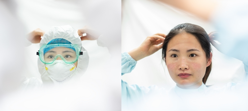 2020年年初,突如其來的新冠肺炎疫情籠罩著全國,在這場抗擊疫情的戰(zhàn)爭中,宜興市中醫(yī)院發(fā)熱門診的醫(yī)護(hù)人員始終堅(jiān)持在一線,這是一組她們的群體肖像,摘下口罩的一刻,一條條殷紅的印痕,爬上你秀美的臉龐,那是連續(xù)奮戰(zhàn)的記號,那是戰(zhàn)“疫”的痕跡,那是天使的印記。