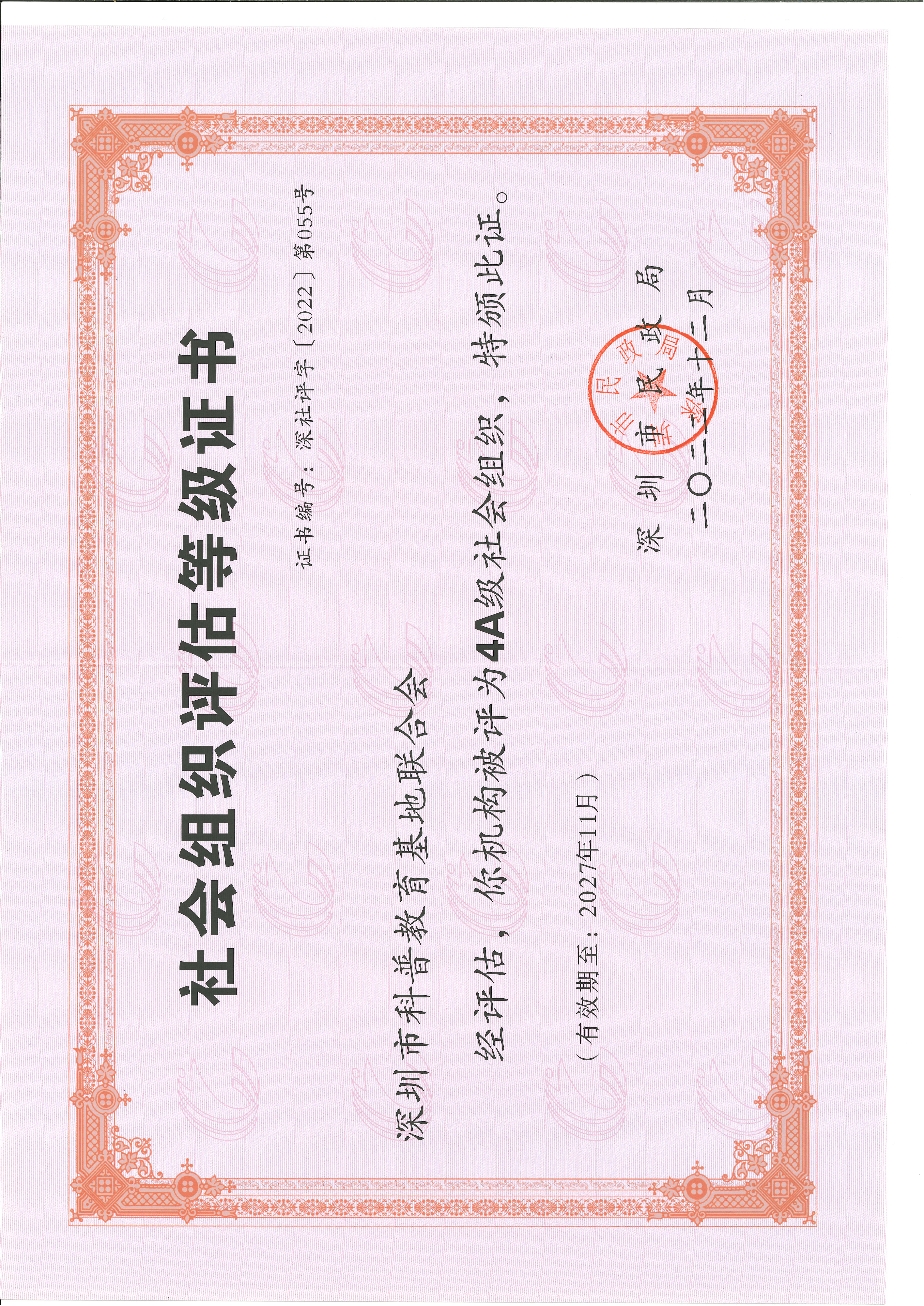 社會組織等級證書: