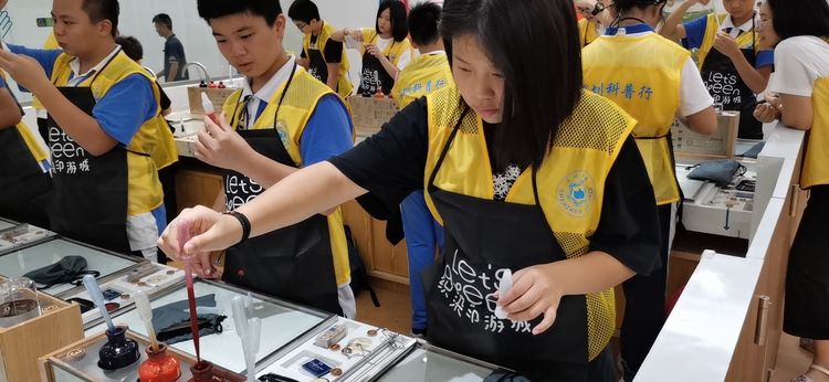 同學(xué)們來(lái)到了全國(guó)首個(gè)紡織工業(yè)旅游科普基地——Let's Green織染印游城。