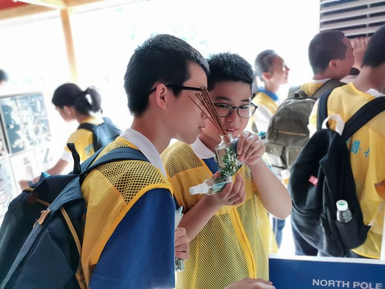 同學(xué)們還近距離接觸香草植物,用手觸摸香草植物,細(xì)嗅指尖沾染的芳香,摘下一片品嘗味道。