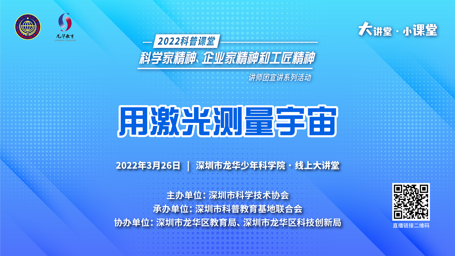 本次活動(dòng)特邀深港產(chǎn)學(xué)研基地高級(jí)電子工程師李春來(lái)博士擔(dān)任主講,主題為“用激光測(cè)量宇宙”,來(lái)自龍華區(qū)少年科學(xué)院、深圳市格致中學(xué)、龍華區(qū)外國(guó)語(yǔ)學(xué)校、龍華高級(jí)中學(xué)教育集團(tuán)觀瀾校區(qū)、龍華區(qū)振能學(xué)校等學(xué)校學(xué)生參與了直播講座。