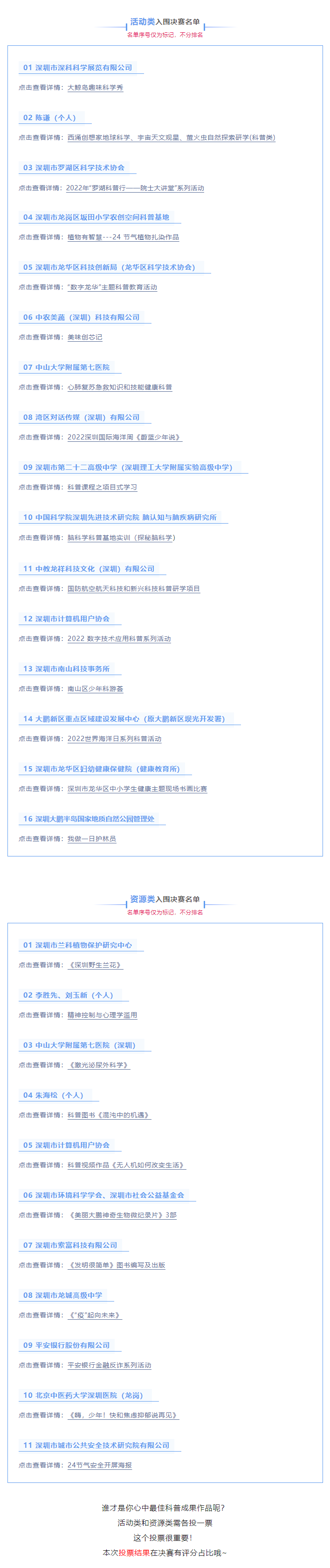 第四屆深圳科普成果展示大賽決賽名單新鮮出爐,歡迎大家圍觀,為您喜歡的作品投票!